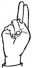 На ћирилици написано НЕДА ГРУБНИЋ састоји се из 11 слова [?]. Исписано ћириличном једноручном азбуком за глувонеме: